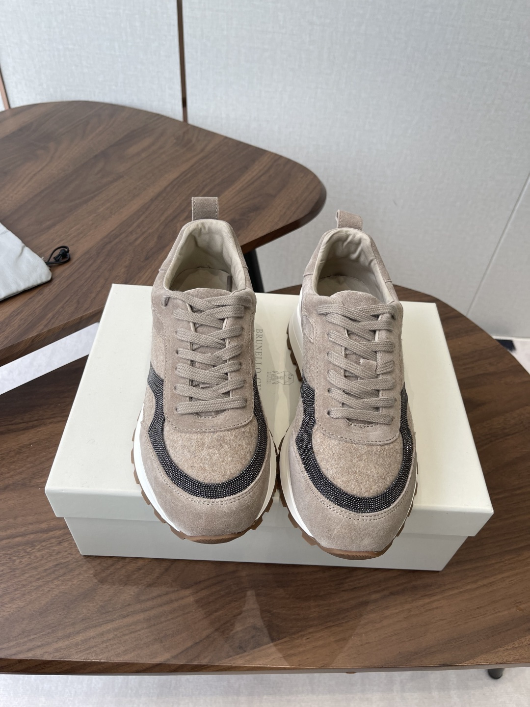 This shoes is AAAAA 1:1 quality (superb). Materials used are identical to the original ones. Brunello Cucinelli trademark marks are indistinguishable to the authentic. Photos take by actual shoes, what you receive will be 100% same with our photos.