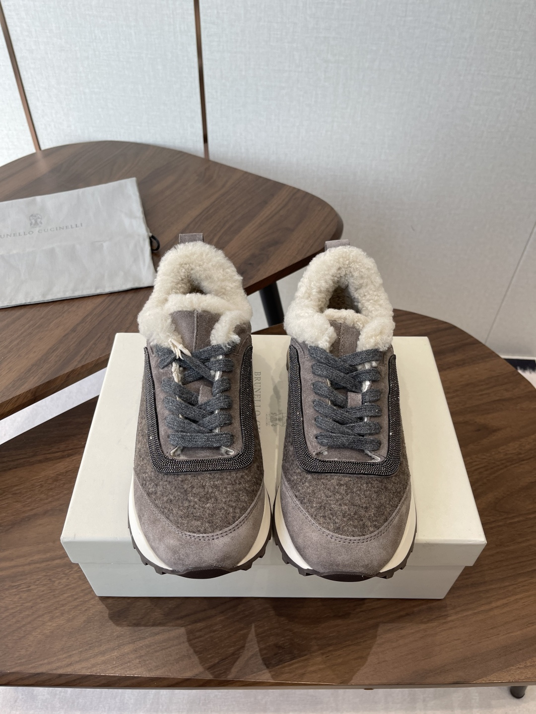 This shoes is AAAAA 1:1 quality (superb). Materials used are identical to the original ones. Brunello Cucinelli trademark marks are indistinguishable to the authentic. Photos take by actual shoes, what you receive will be 100% same with our photos.