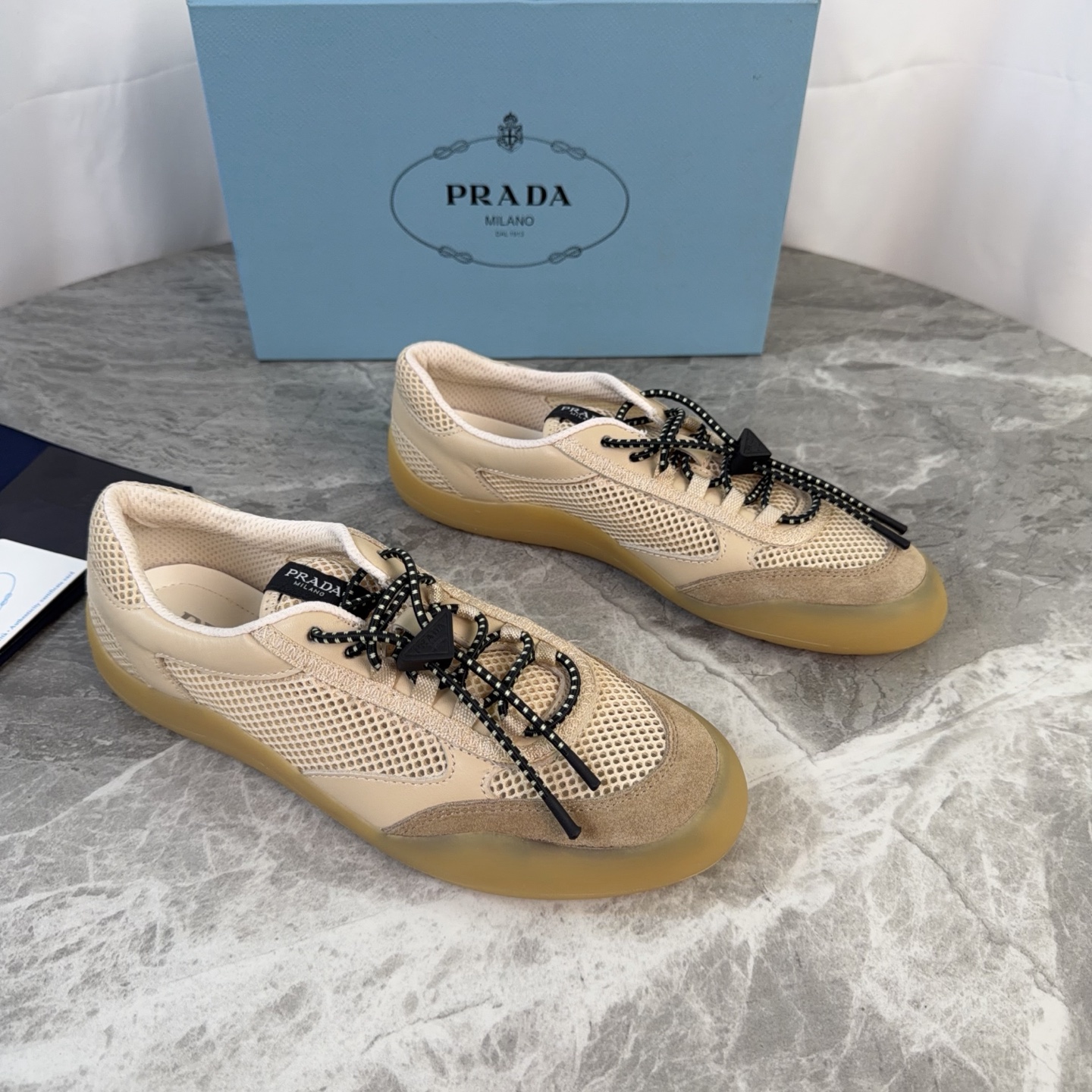 This shoes is AAAAA 1:1 quality (superb). Materials used are identical to the original ones. Prada trademark marks are indistinguishable to the authentic. Photos take by actual shoes, what you receive will be 100% same with our photos.